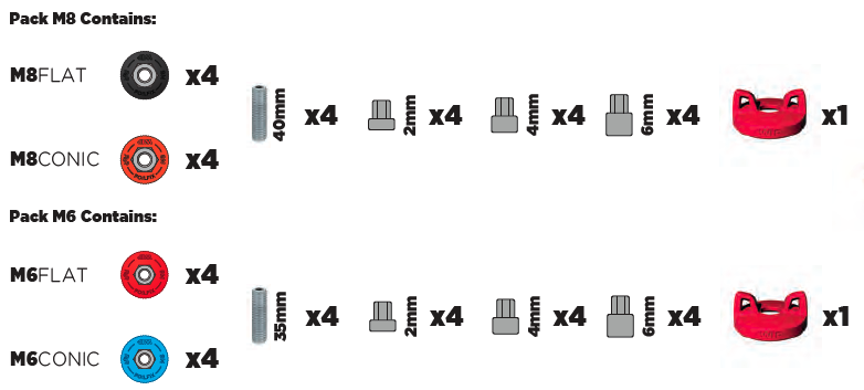 • Including : x4 Red Flat washers + x4 Blue Conic washers to fit the perfect box and foil plate height